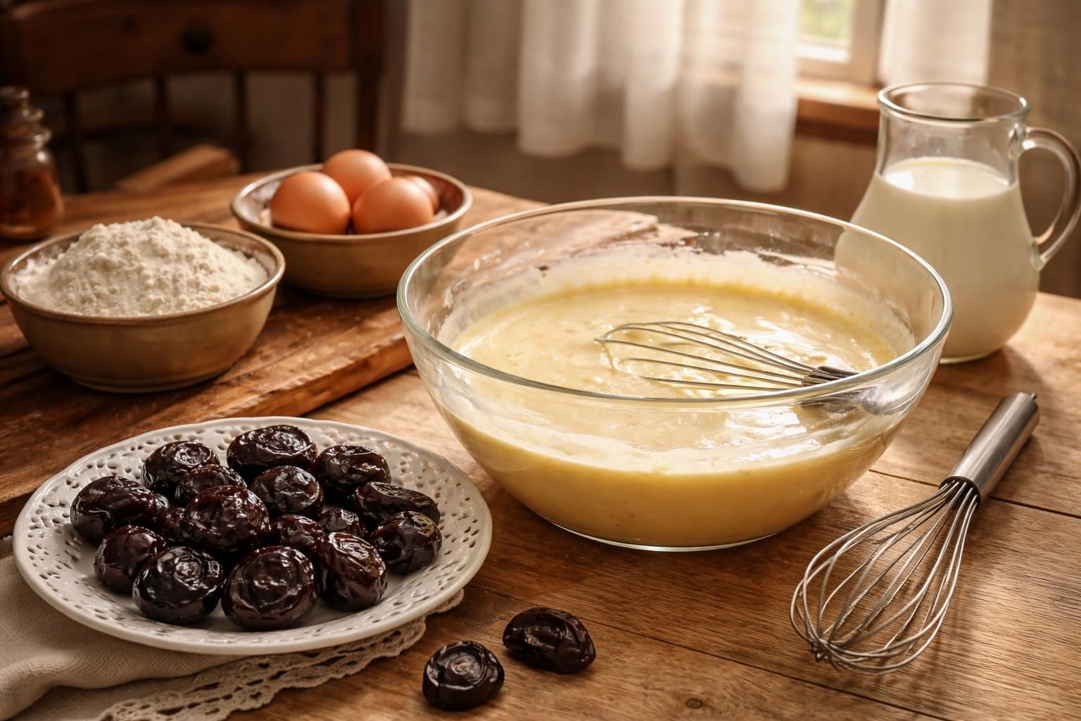 Étapes de préparation du far breton aux pruneaux