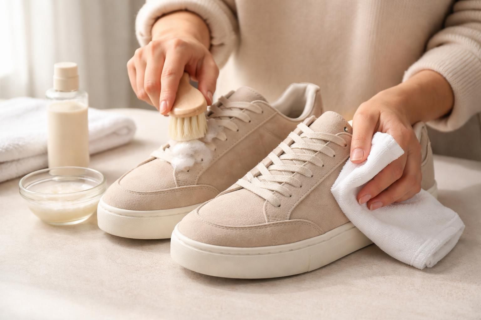 Nettoyage en profondeur des baskets en daim